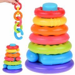 Az érzékszervi piramisok 6 hónapos kortól ideálisak gyermekek számára. A hat különböző mintájú és textúrájú elemből álló színes torony felkelti gyermeke figyelmét és kielégíti a világ iránti kíváncsiságát. A játék nemcsak a gyerekek fantáziáját serkenti, hanem a vizuális és mozgáskoordinációt is támogatja. A lemezek puha műanyagból készültek. A textúrák és színek változatossága serkenti gyermeke érzékszerveinek fejlődését, és további felfedezésekre ösztönöz.