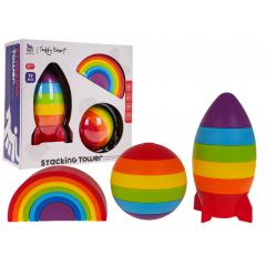 Érzékszervi, egymásra rakható játékkészlet gyerekeknek 18 hónapos kortól. A készlet 19 különböző színű elemből áll, melyekből kicsinyed rakétát, szivárványt és labdát is alkothat. A különféle, élénk színek serkentik a baba érzékeit, és játékra ösztönzik. Ez a készlet korlátlan játéklehetőséget kínál.