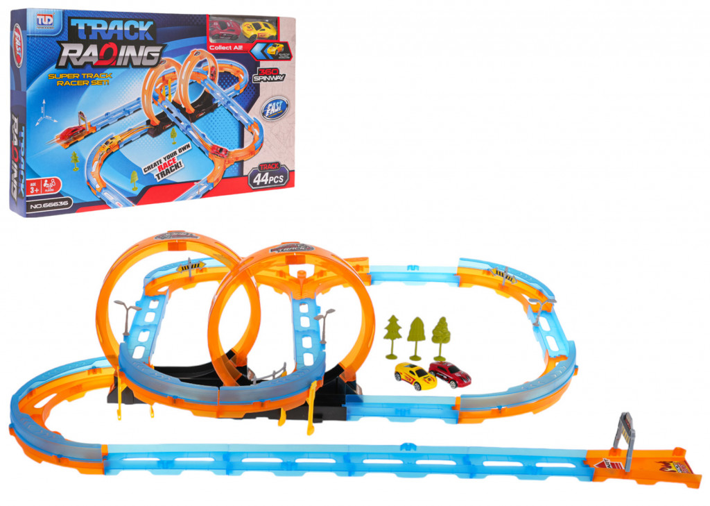 A két 360 fokos huroknak és biztonsági korlátnak köszönhetően az autók teljes sebességgel teszik meg az utat anélkül, hogy leesnének a pályáról. Az egész kiváló minőségű műanyagból készült , intenzív színekben, ami ráadásul vonzza a figyelmet és játékra ösztönöz.