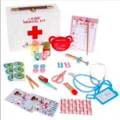 Ez a hatalmas orvosi készlet 3 év feletti gyermekek számára ajánlott. A gazdagon felszerelt orvosi készlet teljes egészében természetes fából készült . Az orvosi felszerelésekkel és kiegészítőkkel teli játék ideális ajándék lesz.
