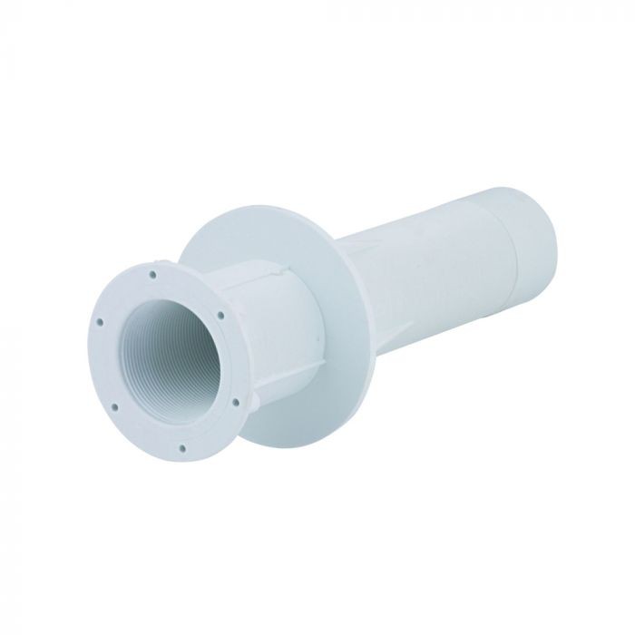 Beton medencéhez használható fali átvezetés 50-es PVC nyomócsőhöz 2"-os menetes csatlakozással a befúvó oldalon.