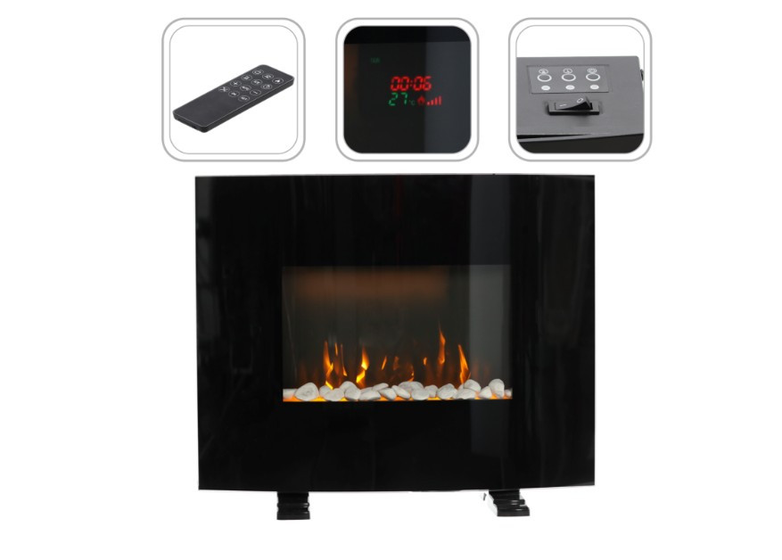 Ez a fekete, falra szerelhető vagy szabadon álló, ívelt előlappal ellátott kandalló modern és stílusos megoldás bármilyen belső térbe. Távirányítóval és érintésérzékeny gombbal felszerelve, így könnyű használni. A lánghatás a fűtési funkciótól függetlenül működik, az állítható fényerő pedig lehetővé teszi a tökéletes hangulat megteremtését. A ventilátoros fűtőberendezés két fűtési módot kínál, a hőbiztosíték pedig megvédi a készüléket a túlmelegedéstől.