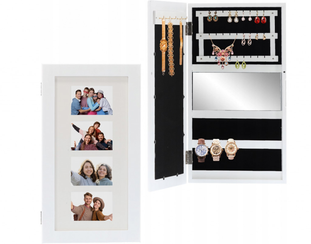 Az ékszerszekrényben négy fotótér található, melyben egy helyen tárolhatod emlékeidet, szeretett fotóidat. Ez a tökéletes módja annak, hogy személyes és szentimentális hatást adjon ékszerkollekciójához.
