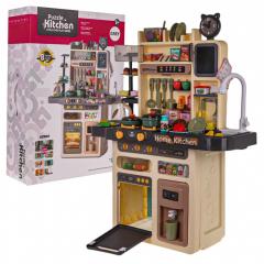 Fantasztikus, gazdagon felszerelt, nagyméretű multifunkcionális konyha 3 év feletti gyermekek számára. A konyhában található egy mosogató csappal, amelyből vizet lehet önteni, megvilágított égőfejek főzési és sütési hangokkal, az egyik égőfej gőzfejlesztő funkcióval is rendelkezik, mozgatható gombok, páraelszívó lámpával és zenei panellel, nyitható sütő, hűtőszekrény vízadagolóval, óra, polcok és számos konyhai kiegészítő. A készlet 7 db AA 1,5 V-os elemmel működik (nem tartozék).