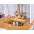 A konyha mikrohullámú sütővel, sütővel és indukciós főzőlappal van felszerelve, amely főzési hangokat ad ki, az arany gombok pedig interaktívvá teszik a szórakozást. Az arany csapteleppel ellátott arany mosogató luxus bájt kölcsönöz a konyhának. Oldalt egy praktikus köténytartó található, és két tágas szekrényben tárolható az összes kiegészítő. A levehető lábaknak köszönhetően a konyha a gyermekkel együtt nőhet, alkalmazkodva az igényeihez. Az arany részletekkel díszített fehér konyha elegáns, és valószínűleg bármelyik gyerekszobába illik.