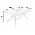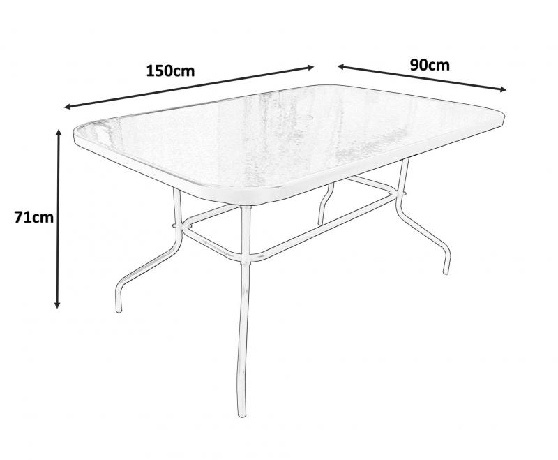Klasszikus kerti asztal üveglappal, amely a legtöbb székmodellhez passzol. Tökéletes kertbe vagy teraszba nagyobb családi összejövetelekhez vagy baráti társaságokhoz. A csúszásmentes lábak garantálják a stabilitást és a biztonságos használatot. Az asztallábak további profillal készültek, hogy támogassák az asztallapot és megerősítsék a széleit. A lábakat rögzítő kiegészítő keret biztosítja a teljes tartósságot és nagyobb terhelés lehetőségét az asztallapon.