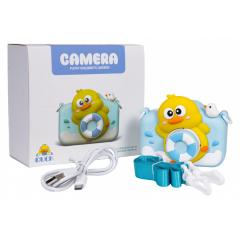 Felvételi funkcióval, további fotóeffektusokkal és játékokkal ellátott kamera hat éves vagy annál idősebb gyermekek számára. A készlet kiváló minőségű anyagokból, a részletekre való odafigyeléssel készült. Minden fénykép különféle szórakoztató effektusokkal díszíthető. A kamera memóriájába öt beépített játék is be van építve. A kamera memóriakártya nélkül akár 50 fényképet is képes készíteni. Egy 32GTF kártyával körülbelül 8500 fényképet tud készíteni. A készlet tartalmaz egy nyakpántot, egy USB töltőkábelt és egy használati utasítást, valamint egy gumi objektívtokot egy vidám kacsával és mentőövvel. A kamerát egy 5V-os 1000mAh-s újratölthető akkumulátor táplálja (tartozék).