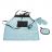 Fém edény készlet, konyhai kiegészítőkkel, kék köténnyel
