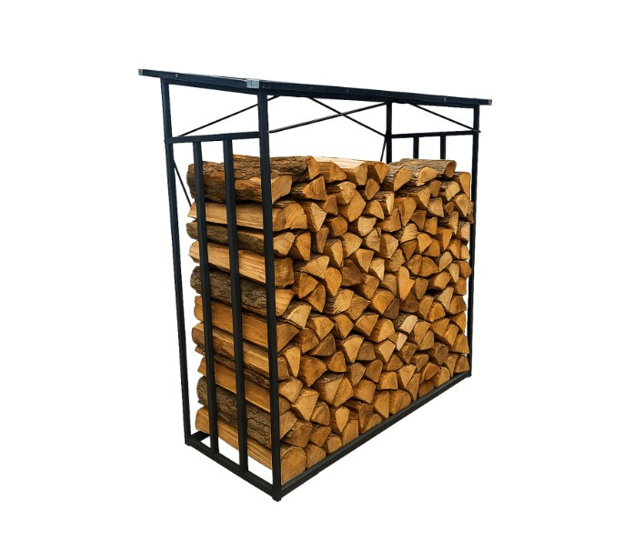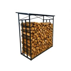 Tartós fém tűzifatartó hullám alakú tetővel, amely megvédi a fát a nedvességtől. Tökéletes tűzifa tárolására és védelmére a kertben vagy a telken.