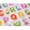 A betűk fatáblán vannak elrendezve, különböző színekkel festve, ami nagyon vonzóvá teszi az egész puzzle-t és felkelti a gyermek figyelmét.