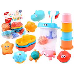 Fürdőjáték szett vízi állatokkal, halászhálóval és kis vödrökkel