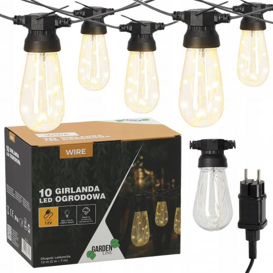 10 méter hosszú kerti füzér, amely tökéletes az erkély, terasz vagy kert díszítésére. 20 energiatakarékos meleg fehér LED izzóval (3000K) szerelve kellemes és hangulatos megvilágítást biztosít a nyári estéken. A felakasztókonzoloknak köszönhetően az összeszerelés gyors és egyszerű.