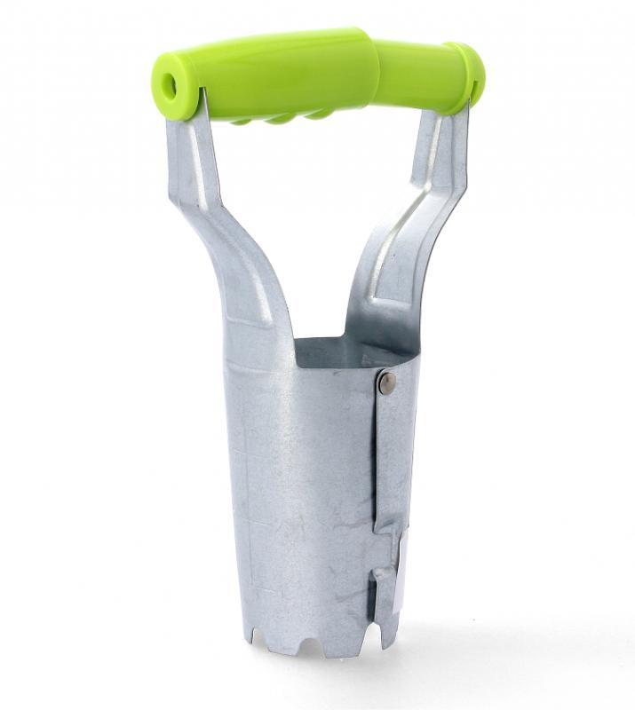 Horgonyozott fém palántázó, műanyag fogantyúval. A növények gyors, és egyszerű kiültetéséért a kertben.
