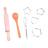 A készlet kötényből, szakács sapkából, kesztyűből és konyhai kiegészítőkből áll (sodrófa, kanál, sütőforma, habverő).