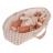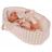 A készletben egy gyönyörű baba van ruhában, bújós nyuszival és egy hordozókosárral .