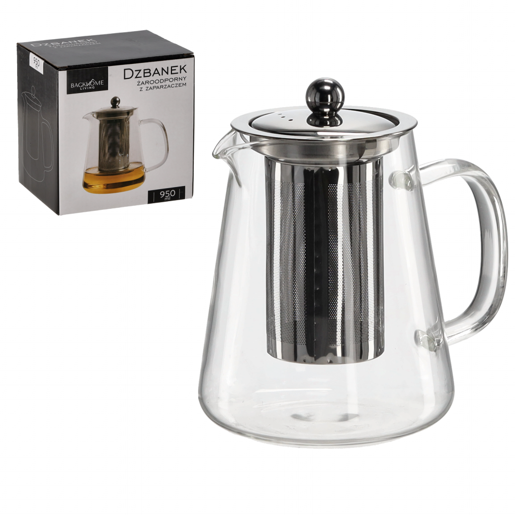 Elegáns, modern és praktikus – ez a 950 ml-es hőálló teáskanna tökéletes választás mindennapi teázáshoz. A boroszilikát üvegből készült kancsó ellenáll a magas hőmérsékletnek, így közvetlenül forró vízzel is tölthető. A rozsdamentes acél szűrő lehetővé teszi a tealevelek vagy gyógynövények kényelmes áztatását, míg a fém fedél biztos záródást és hosszabb hőmegtartást garantál.