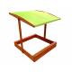 Fából készült homokozó tetővel, amely megvédi a gyermeket a naptól, és játék után leengedhető, hogy megvédje a homokot az állatoktól, levelektől stb.