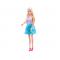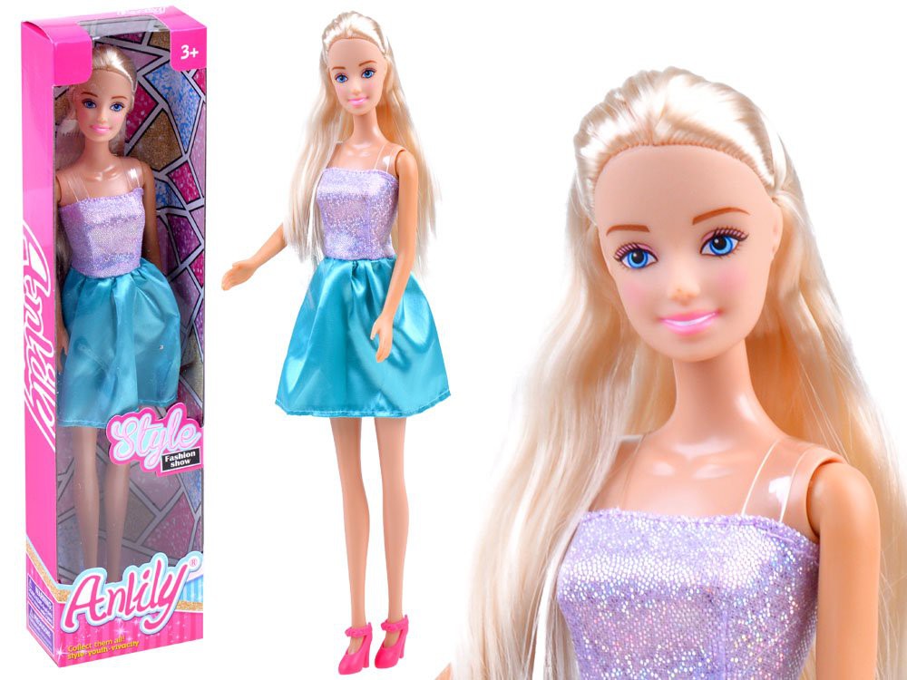 Hosszú szőke hajú anily baba rózsaszín-kék kisruhában (30 cm)