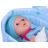 Egy bájos baba gyönyörű kék szemekkel, kék sapkával és delfines ruhával. Miután adott neki egy kis folyadékot, bepisil. Az egész baba gumiból készült, és a végtagjai mozgathatóak. A babahordozó kiváló minőségű anyagokból készült. A hordozóra hevederek vannak varrva, hogy megkönnyítsék a baba szállítását. Ezenkívül a készlet a baba etetéséhez szükséges tartozékokat is tartalmazza. A készlet még a kisgyermekszobákba is tökéletesen illeszkedik. A hordozó meglehetősen nagy, és akár 30 cm magas babák is elfér benne!