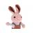 A nyúlnak műanyag szeme, rózsaszín orra és aranyos fülei vannak. Egy kantáros rövidnadrágot és csíkos, hosszú ujjú pólót visel.