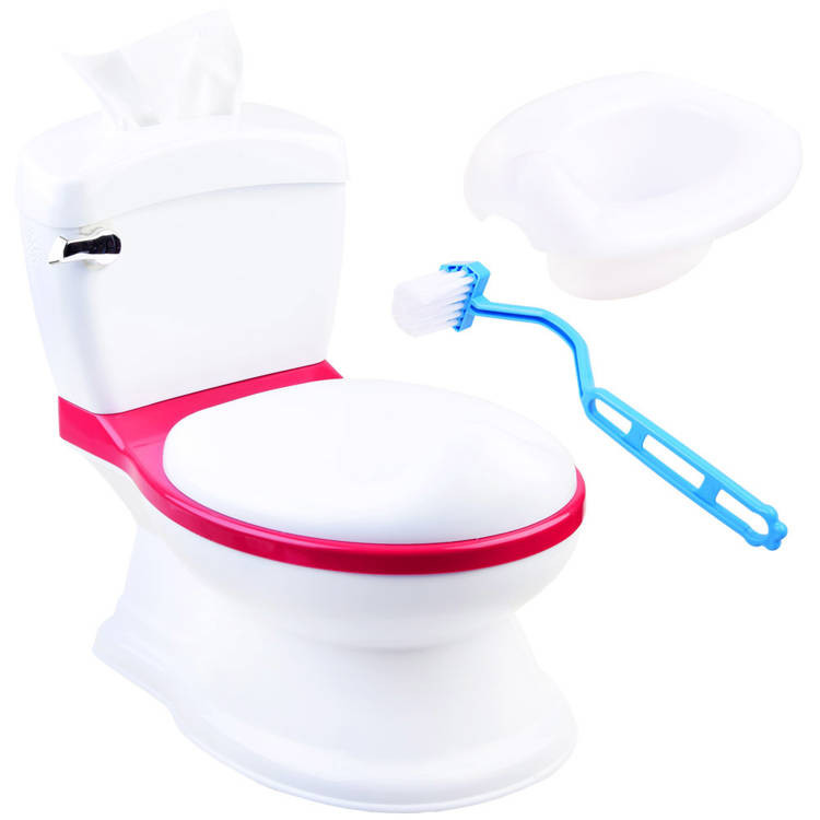 A vécé mintája tökéletesen utánozza a valódi háztartási gépeket, aminek köszönhetően a gyermek nagyobb valószínűséggel használja majd saját, magasságához igazodó trónját.