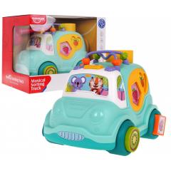 Interaktív busz válogatóval, hangeffektusokkal és fénnyel 18 hónaposnál idősebb gyermekek számára. A busz oldalán és a kerekein alakváltó található. A készlet 4 db hozzá illő kockát tartalmaz. A tetőn található egy nyílás, amelyen keresztül kalapáccsal üthetjük a labdákat a járműbe (a kalapács és a labdák mellékelve vannak). A labdák belsejében csörgők találhatók. A nyílásnál egy gyöngyváltó is található. A labdákat a jármű hátsó ajtajának kinyitásával vehetjük ki a járműből. A szélvédő tetején található egy gomb, amely hangeffektusokat aktivál, például a jármű indítási hangját, dudát vagy vidám dallamokat. A hangeffektusokat villogó fények kísérik. A játék 2 db AA 1,5 V-os elemmel működik (nem tartozék).