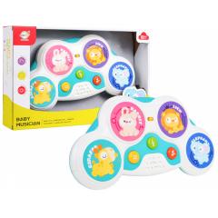 Interaktív, érintésérzékeny dobkészlet tizennyolc hónapos kortól babáknak. A legkiválóbb minőségű anyagokból készült, ennek a játéknak nincsenek éles szélei. A hang- és fényhatások, valamint a gazdag színpaletta több szinten stimulálja a baba érzékszerveit. Az érintésérzékeny dobok vidám állatok színes képeit ábrázolják: zsiráfot, nyúlt, oroszlánt és elefántot. Megnyomásukra állathangok, dallamok, dobritmusok játszódnak le, és színes fények villognak a játék oldalán végig. A játék 3 db 1,5 V-os AAA elemmel működik (nem tartozék).