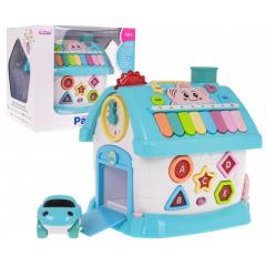 Interaktív, oktató jellegű házikó 18 hónapos kortól gyermekek számára. A házikó a legjobb minőségű műanyagból készült, élénk színekben pompázik, vonzza a gyermek figyelmét és ösztönzi a tanulásra ösztönző játékot. A házikó 4 fallal rendelkezik, melyek különböző látványosságokat kínálnak, rózsaszín tetővel és hordozófogantyúval rendelkezik. A játék 3 db AA 1,5 V-os elemmel működik (nem tartozék). A készlet tartalmaz egy kék autót is.