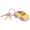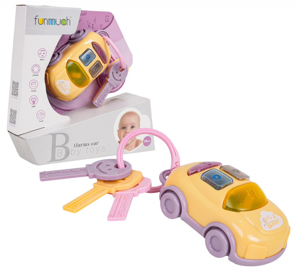 Interaktív, jármű alakú kulcstartóból és kulcsokból álló készlet tizennyolc hónapos kortól gyermekek számára. Bababarát anyagokból készült, a játéknak nincsenek éles szélei. Az autó tetején található gombok hangeffektusokat aktiválnak: csengő, indítási hang, autónyitási hang és kürt. A lámpák is villognak. A játék 2 db 1,5 V-os AAA elemmel működik (nem tartozék).