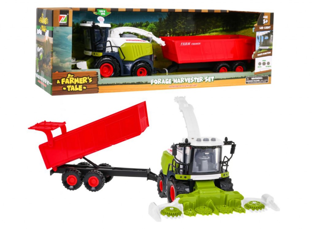 Masszív kivitelezésű interaktív kombájn, tökéletes másolata egy igazi kombájnnak. A pótkocsija leszerelhető. A kombájn tetején három funkciógomb található, melyek megnyomásával fel lehet kapcsolni a fényszórókat, indító hangokat, kürt és tolatásjelző.