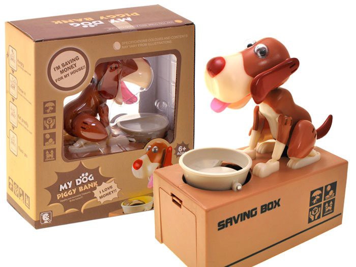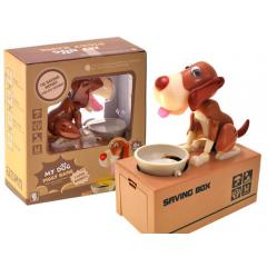 Az érmét a kutya edényébe tesszük, amely előtte van, majd megérintve a kutya mozogni kezd, mintha ételt fogyasztana a tálból, aminek következtében az érme a piggy bankba esik. A kutya az érme evése közben viccesen mozog, és összecsapja a fülét. A piggy bank üzemeltetéséhez 3 elemre van szükség. A malacka bank megtanítja gyermekeinket, hogy pénzt takarítsanak meg, és sok szórakozást kínáljon számukra, valamint segít megérteni, hogy a megtakarítás nagyon szórakoztató és csak pozitív hatásokkal jár. Az érmék könnyen eltávolíthatók a dugóval borított lyukon keresztül.