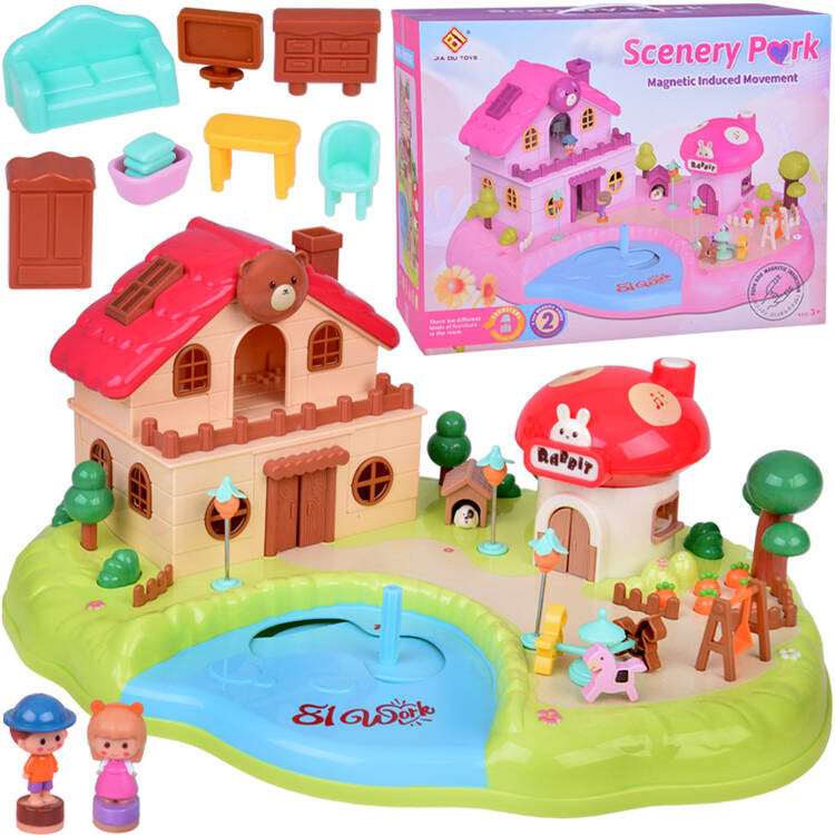 - Mágneses mozgás: A mágneses indukciós mechanizmus mozgásba hozza a kiválasztott elemeket, például figurákat vagy a jelenet részleteit. Felszerelés: A készlet szabadon elhelyezhető bútorokat és dekorációkat tartalmaz.