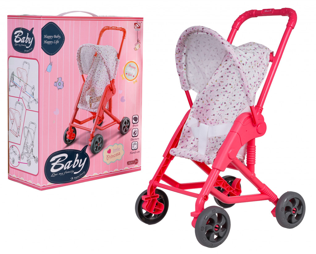 Ez a színes babakocsi három éves kortól gyermekek számára készült. Gyermekbiztos anyagokból és élénk színekből készült, a babakocsi stabil és könnyen mozgatható.
