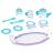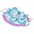 A használt tompa színek: fehér, türkiz és világos rózsaszín csodálatosan működnek együtt, a pöttyök és szívecskék finom mintái pedig hihetetlenül elbűvölővé varázsolják a szettet.