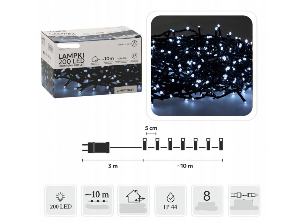- Diódák száma: 200 LED