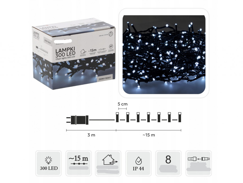 Karácsonyi fényfüzér - hideg fehér - 15 méter
