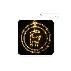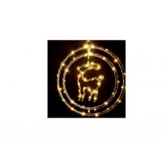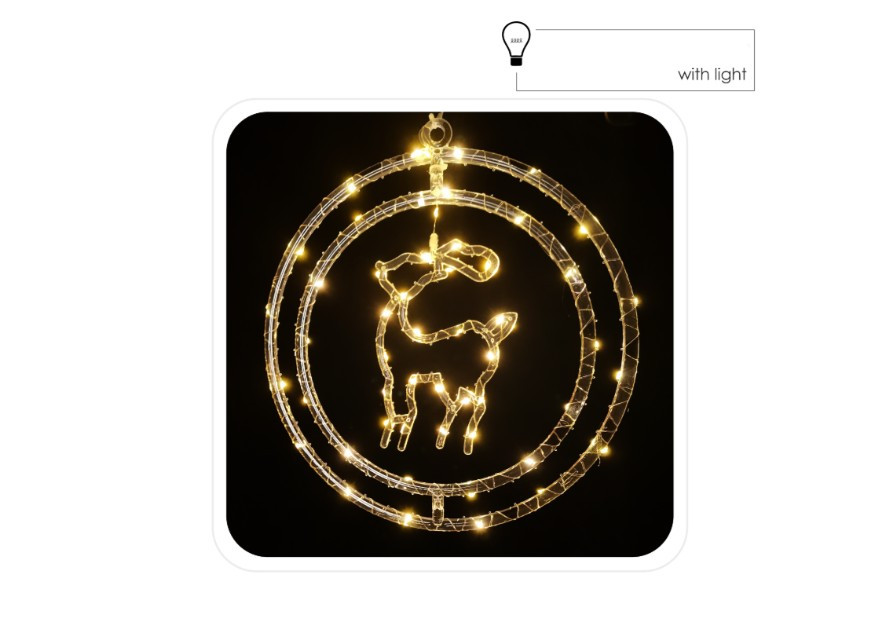 Egy bájos karácsonyfadísz rénszarvas formájában, 30 cm átmérőjű, 50 db meleg fehér mikro-LED-del díszítve. A lágy fény hangulatos, ünnepi hangulatot teremt, így tökéletes a decemberi stílusú enteriőrökbe. Az átlátszó kábel elegáns és visszafogott megjelenést kölcsönöz a dekorációnak. Három AA elemmel működik, így bárhová elhelyezhető – asztalra, ablakpárkányra, polcra vagy ünnepi díszbe – anélkül, hogy konnektorra lenne szükség.