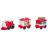 Karácsonyi vonatkészlet Mikulással, tizennyolc hónapos kortól, babáknak. A készlet a legmagasabb minőségű műanyagból készült, élénk karácsonyi színekben. A vonat mozgatható kerekekkel rendelkezik, amelyek könnyedén siklik a padlón. A kocsik leválaszthatók a mozdonyról. A kocsik formaválogatókkal rendelkeznek, és a készlet hat különböző formájú kockát tartalmaz.