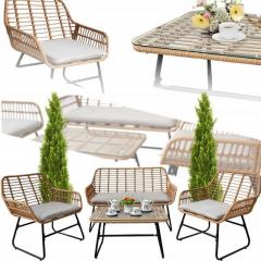 Egy stílusos és funkcionális kerti bútor szett tökéletes választás azok számára, akik értékelik az eleganciát, a kényelmet és a tartósságot. Tökéletes teraszra, erkélyre, kertbe, pavilonba , valamint kávézókba, éttermekbe és szállodák pihenőzónáiba . A bútor kiváló minőségű szintetikus rattanból készült , elegáns barna színben, ami természetes megjelenést kölcsönöz neki, valamint tömör horganyzott acélvázzal , amely ellenáll az időjárás viszontagságainak és a korróziónak.