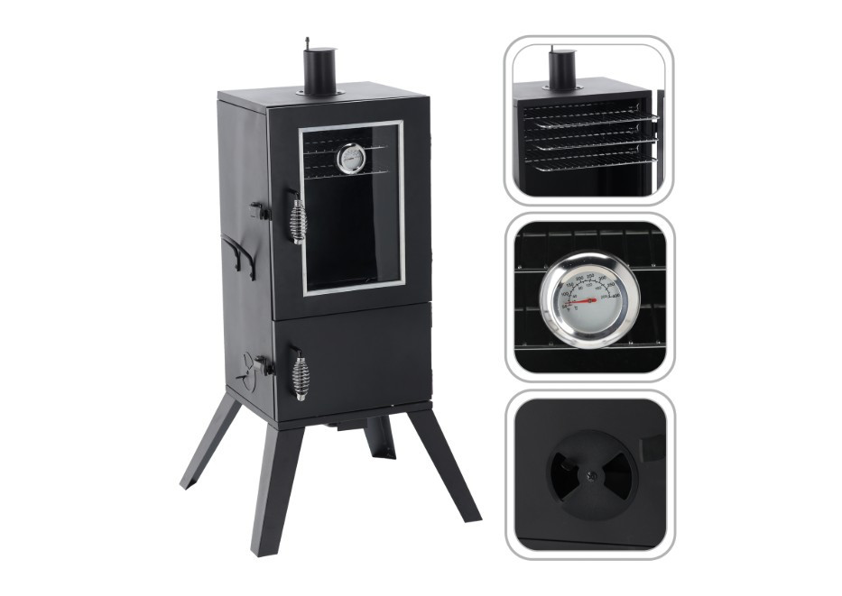 - Beépített hőmérő és zárral ellátott ajtó – teljes kontroll a füstölési folyamat felett