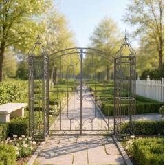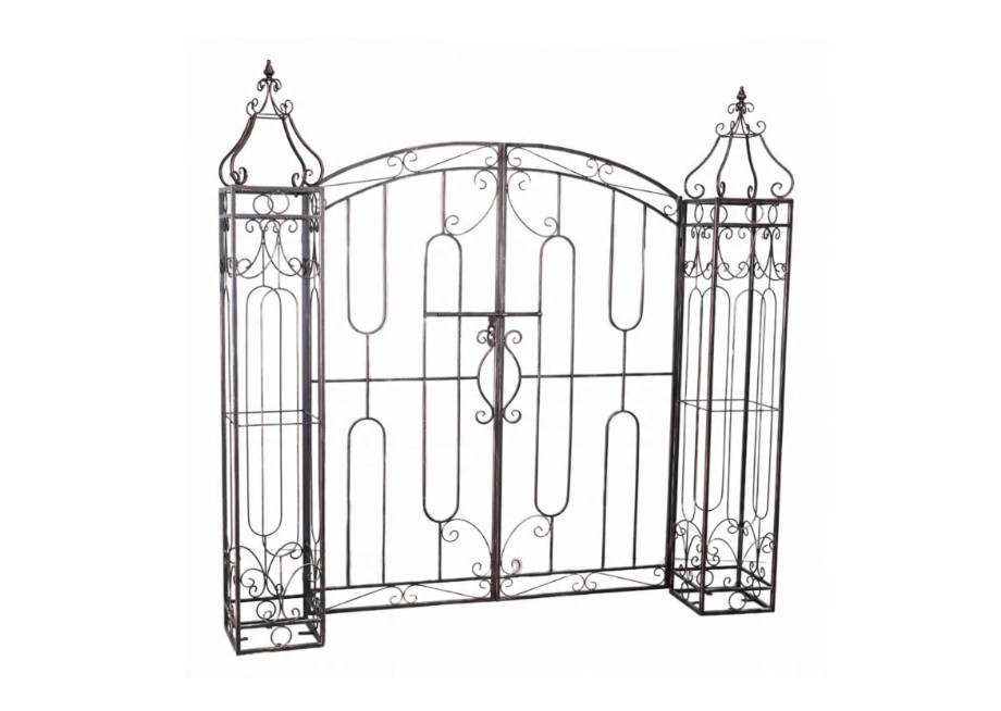 Tegyen egy csipetnyi eleganciát és klasszikus stílust kertjébe ezzel a díszes kerti kapuval . Antik bronz fémből készült , így nemcsak praktikus bejáratot biztosít , hanem feltűnő kerti dísz is .