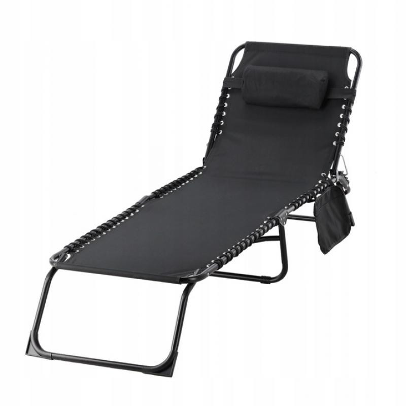 Kerti összecsukhatós napozóágy fekete színben 190 x 58 x 30 cm