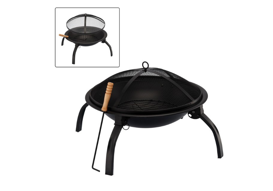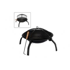 Hőálló festékének és összecsukható lábainak köszönhetően a tűzrakóhely tartós és könnyen tárolható. A készlet tartalmaz egy praktikus vasalót is fa nyéllel és szikravédő fedéllel.