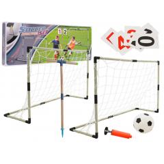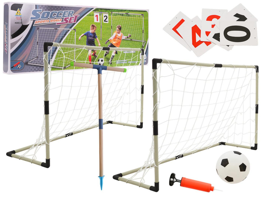 Két kapuból és eredményjelzőből álló szett 3 éves kortól gyermekek számára. A szett tartalmaz egy labdát, egy pumpát és egy eredményjelzőt is.