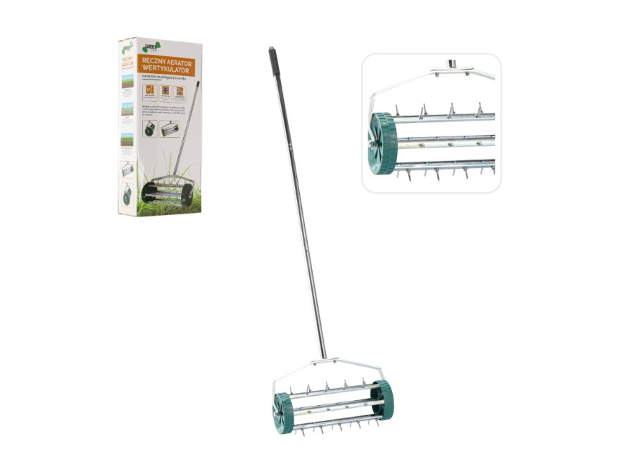 A kerekes kézi gyepszellőztető a gyep szellőztetésére szolgál, tüskékkel átszúrva a talajt. Ez a díszgyepek gondozásához elengedhetetlen eszköz lehetővé teszi a gyep nyírását és a fű állapotának javítását. A kerekek kényelmessé és hatékonnyá teszik a gyepszellőztetővel való munkát. Javasoljuk, hogy szezononként kétszer szellőztesse a gyepet, ami lehetővé teszi a talaj fellazítását és levegőztetését.