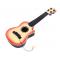 Kisméretű 4 húros gitár pengetővel fa mintázattal