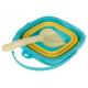 A vödör kialakítása lehetővé teszi a gyors össze- és kihajtást , így a készlet könnyen tárolható és hordozható. A játék tökéletes mind a homokozóban, mind a vízparti nyaraláshoz , így a gyerekek élvezhetik a szabadban való játékot.