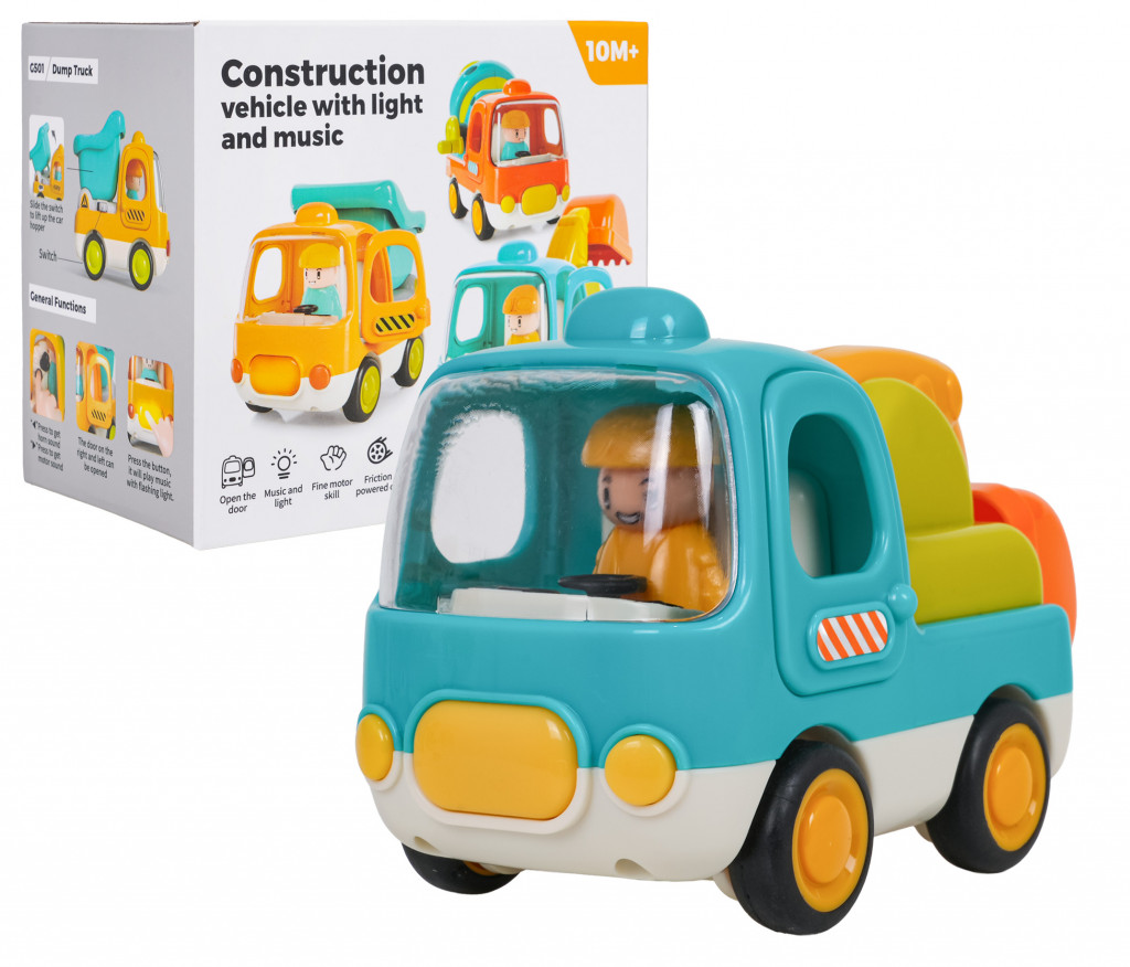Interaktív kotrógép hang- és fényfunkciókkal tíz hónapos kortól gyermekek számára. Tartós és biztonságos műanyagból készült, nincsenek éles szélei, és a legenergikusabb játékot is kibírja. Az élénk színek vonzzák a baba figyelmét és játékra ösztönzik. A hang- és fényhatások stimulálják a baba érzékeit és valósághűvé teszik a játékot. A kerekek könnyedén siklik a talajon, a kotrógép ajtaja és vödörje pedig mozgatható. A játék 3 db AG13 elemmel működik (tartozék).