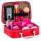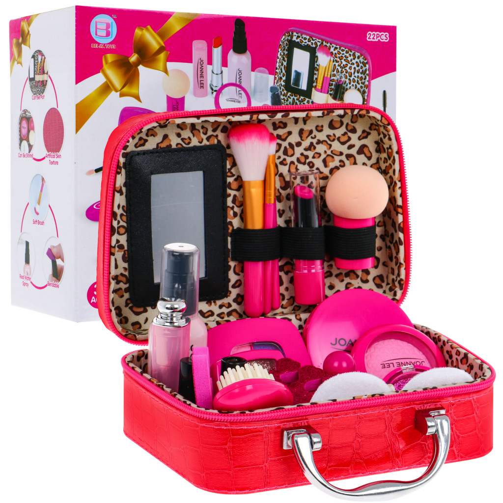 Elegáns és nagy bőrönd puha ökobőrből. Kényelmes fogantyúval, négy lábbal az alján és belső tükörrel rendelkezik. Cipzárral van rögzítve. A teljes készlet 22 elemből áll, és  olyan kozmetikumokat tartalmaz, mint a szemhéjfestékek, csillámok, rúzsok, körömlakkok, szempillaspirál és még sok más. A kozmetikumok hamisítványok, de valósághűen néznek ki, nem kopnak el, a gyermeknek biztonságosak lesznek.