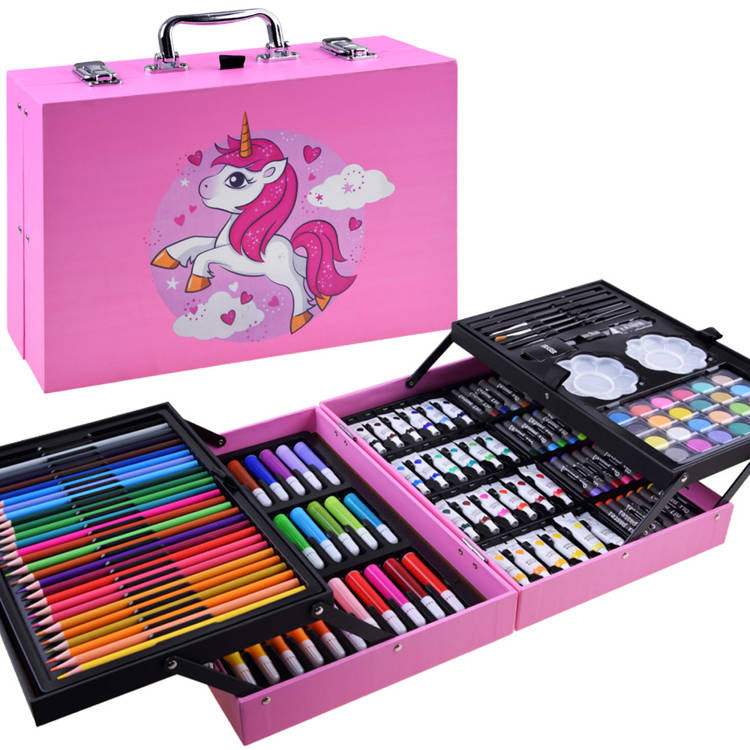 A gyermekek számára készült ládában festhető művészeti készlet valószínűleg minden kis művész számára tetszeni fog. A rajzolás, festés befolyásolja a gyermek finommotorikájának megfelelő fejlődését. Serkenti a kreativitást, de edzi a gyermek agyát és felkészíti az írástanulásra. A zsírkréták, festékek és filctoll többszínű készlete hosszú kreatív szórakozást tesz lehetővé.